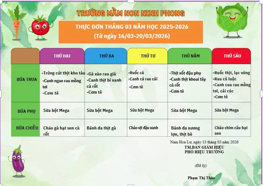 THỰC ĐƠN THÁNG 03 NĂM HỌC 2025-2026 (Từ ngày 16/03-20/03/2026)