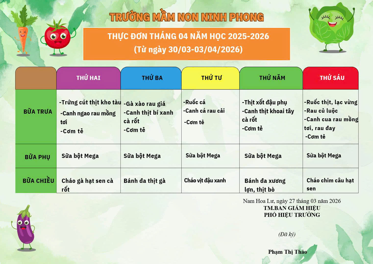 THỰC ĐƠN THÁNG 04 NĂM HỌC 2025-2026 (Từ ngày 30/03-03/04/2026)
